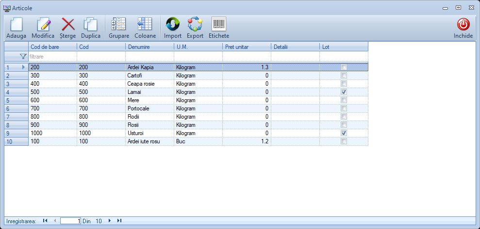 Încărcare în bloc nomenclator articole și parteneri, export numărători pentru contabilitate.